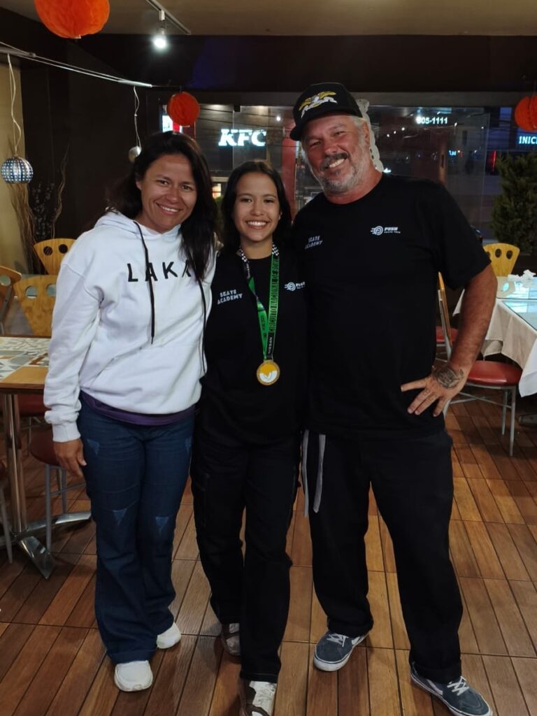 “A pista era muito lisa e bem diferente do que estou acostumada. Nos primeiros dias eu escorregava muito, caía fazendo nada e não conseguia entender o caminho dela. Mas depois de trocar as rodas para escorregar menos e observar como cada pessoa usava a pista, comecei a andar com mais confiança. As manobras foram saindo e tive um bom desempenho na final.”