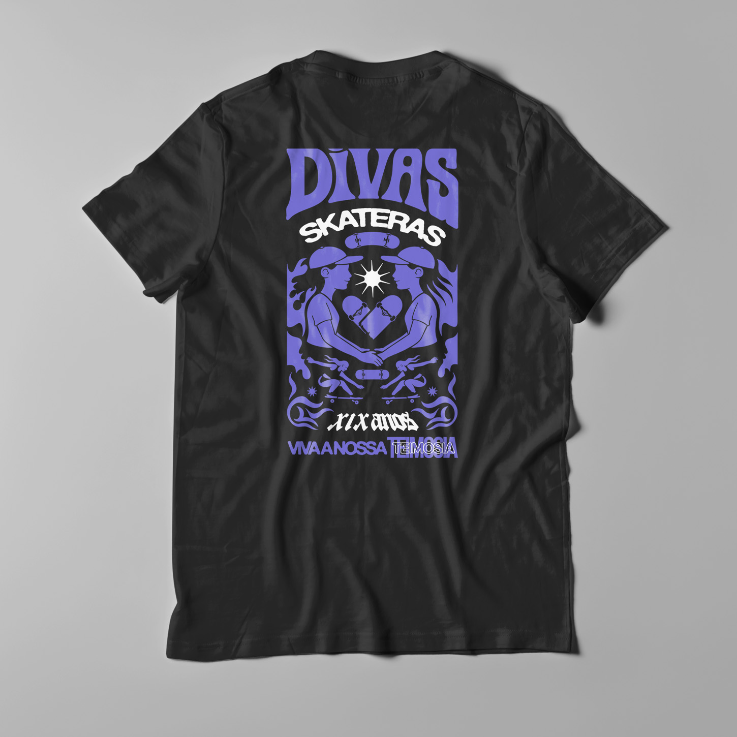 Celebre conosco quase duas décadas de teimosia e amor ao skate! Lançamos a nova camiseta comemorativa Divas Skateras, com arte inédita do artista e skatista Wesley da Hora.
