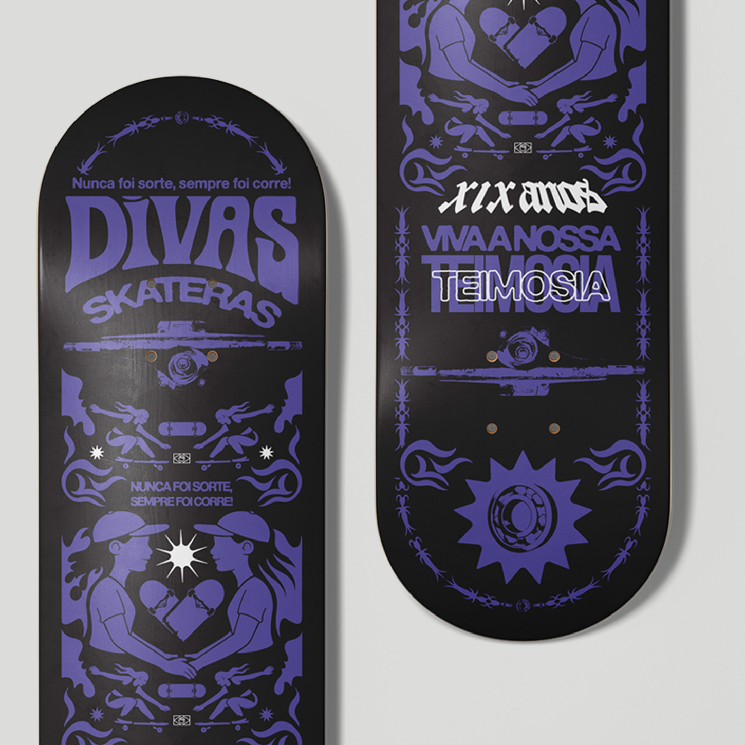 Celebre conosco quase duas décadas de teimosia e amor ao skate! Lançamos o novo shape comemorativo Divas Skateras, com arte inédita do artista e skatista Wesley da Hora.